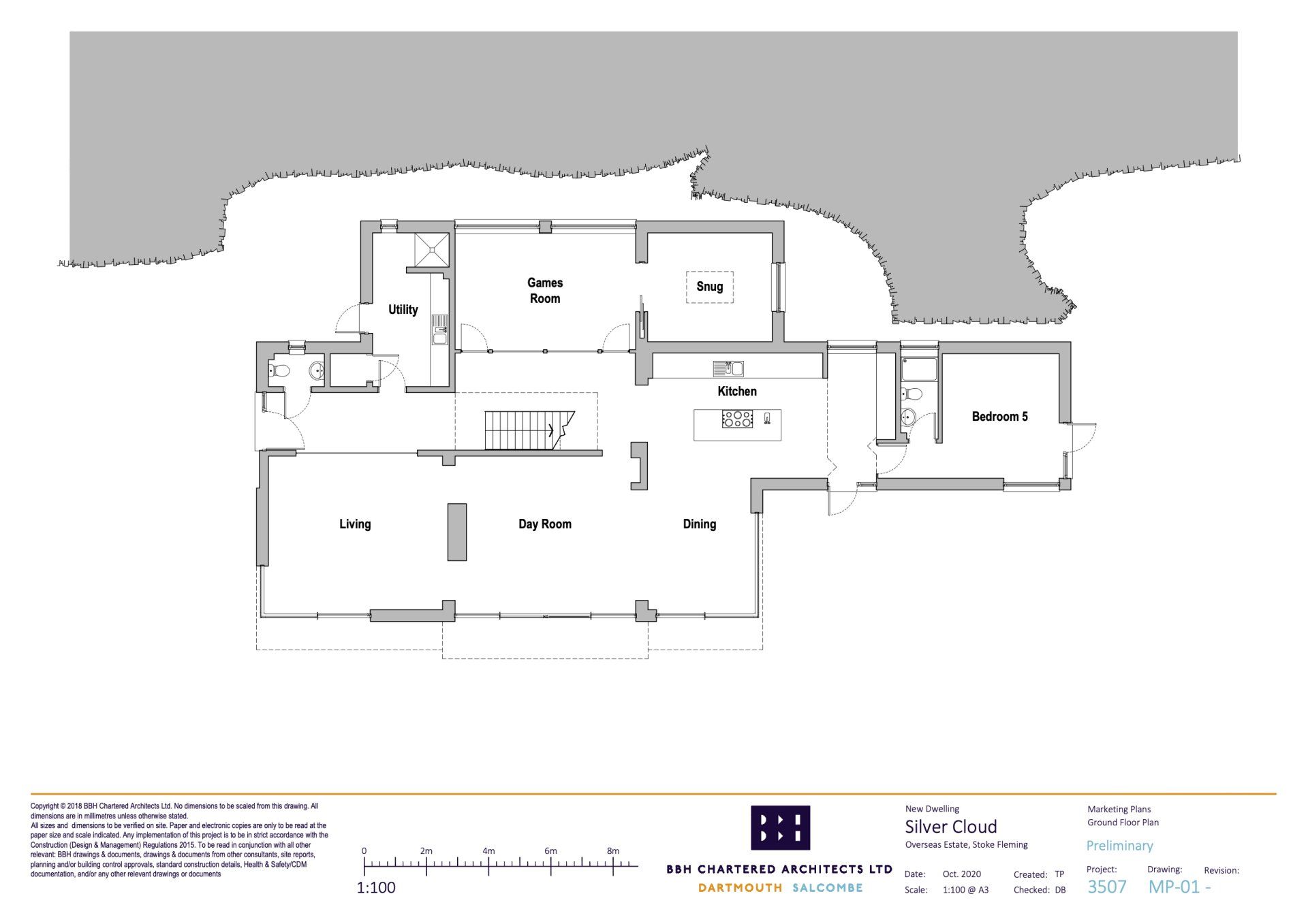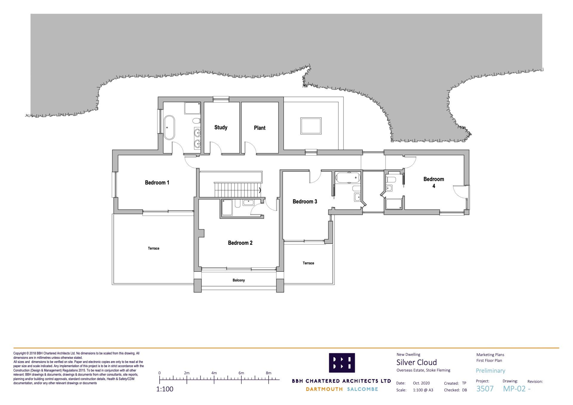 is down the hall, also with a terrace and en-suite bathroom. Bedroom 4, accessed via a glass walkway, has views towards Dartmouth harbour and an en-suite shower room.