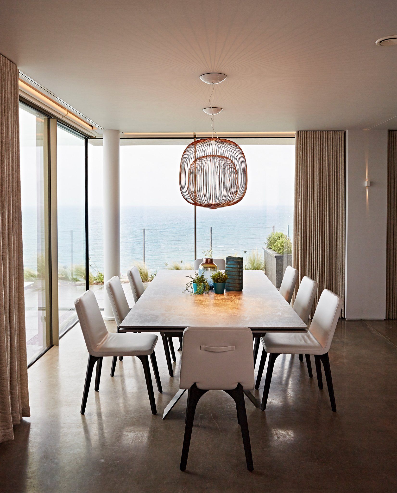 with large extendable table. Next is the Day Room, with plenty of seating, including sofas with movable backs in order to take in the views of the sea. A double-sided fireplace is between this and the Sitting Room